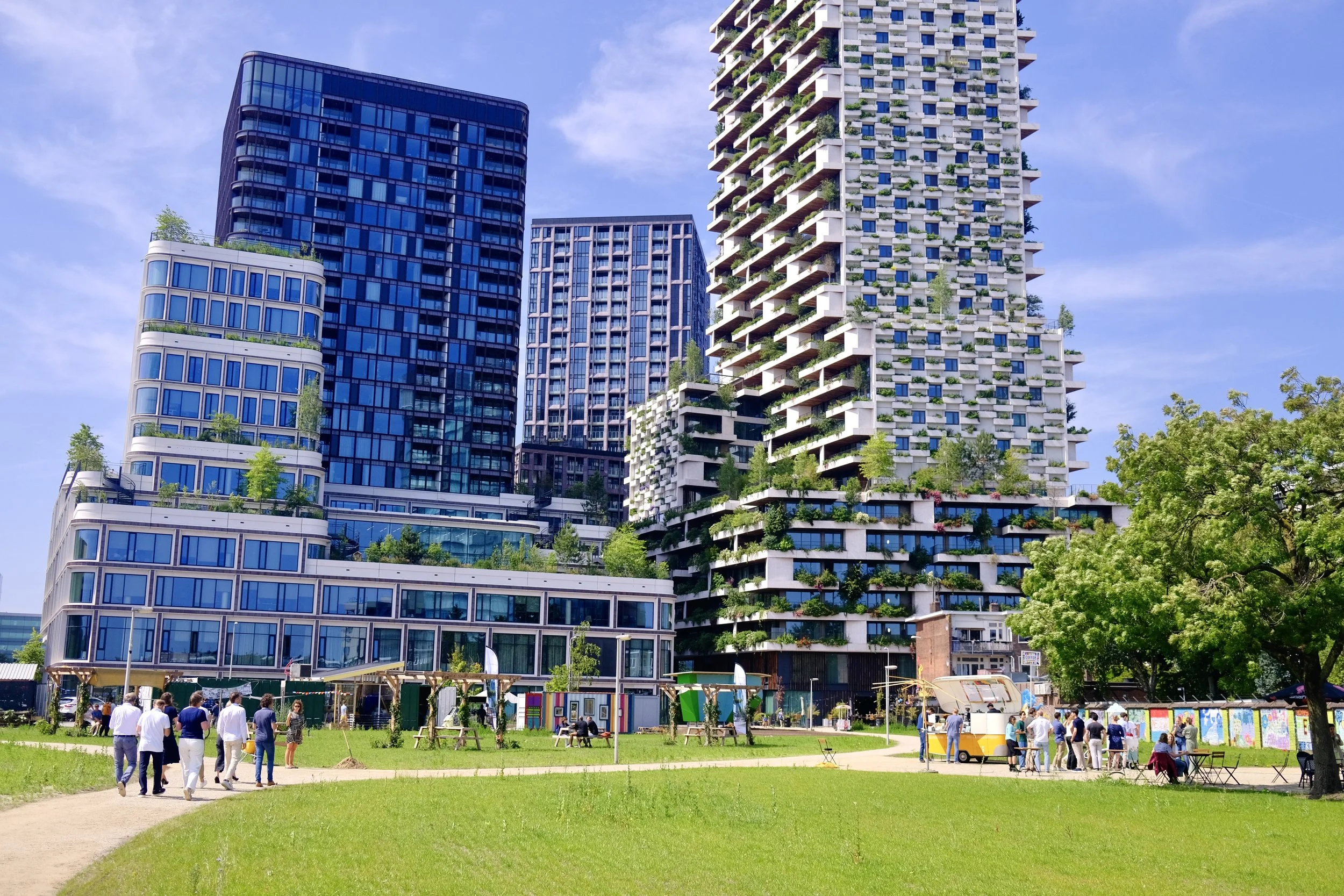 Een plek voor initiatieven uit de buurt en waar(toekomstige) bewoners, ondernemers en bezoekerselkaar kunnen ontmoeten. In de tuin is er ruimte voor kunst,  sport, en creativiteit in het groen.  We vieren het samen met de buurbewoners met een feestelijke openingsborrel.